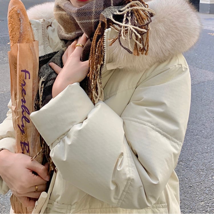 ボリューム感のあるファー付きフードが顔まわりを華やかに演出。