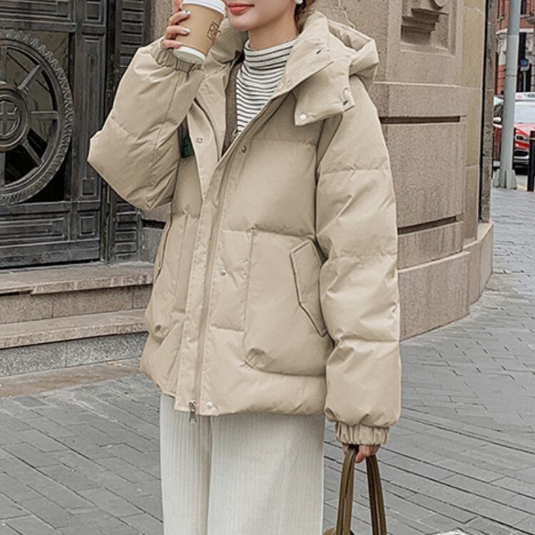 軽くて暖かいホワイトダックダウンを使用したショート丈のダウンジャケット。ややゆったりめのストレートシルエットで、厚手のニットの上からでも楽に羽織れます。防風・防寒に優れた高密度ポリエステル生地を採用し、シワになりにくい“メモリーファブリック”が高見え効果も◎。トレンド感のある韓国風スタイルで、カジュアルから通勤まで幅広く活躍する一着です。