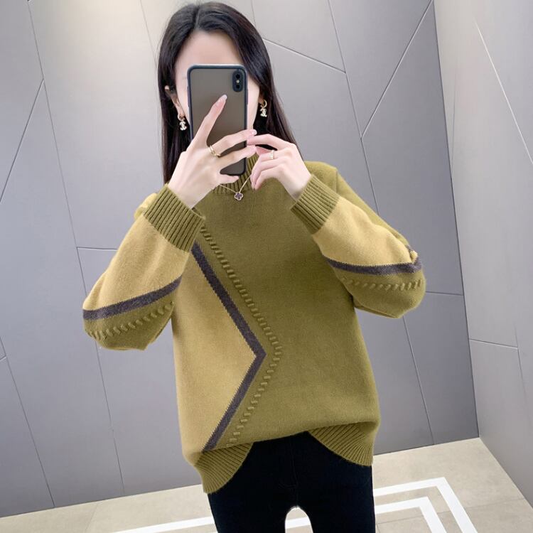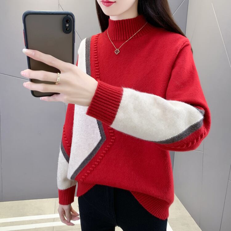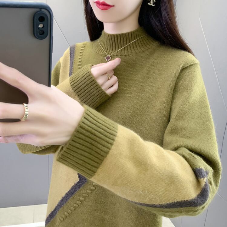 立体編みデザインが目を惹く♪大人カジュアルな配色ニットトップス A10022