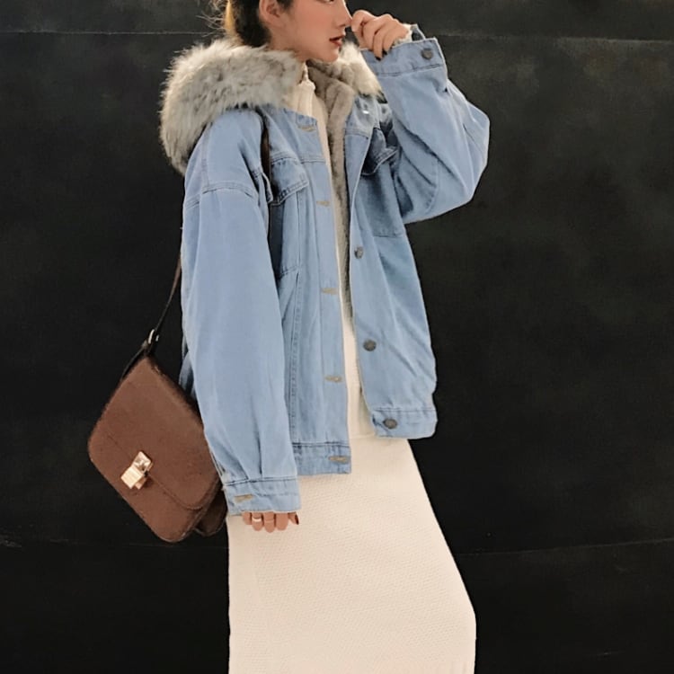 ボリュームファーで小顔見せ♪あったか冬デニムアウター A10025