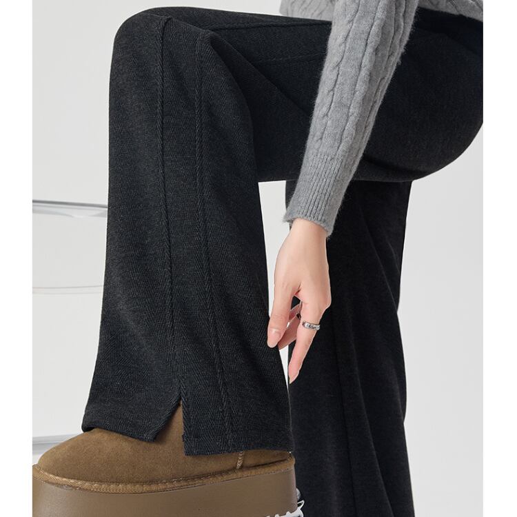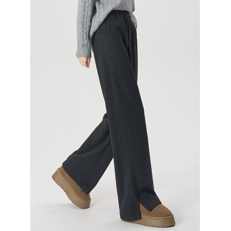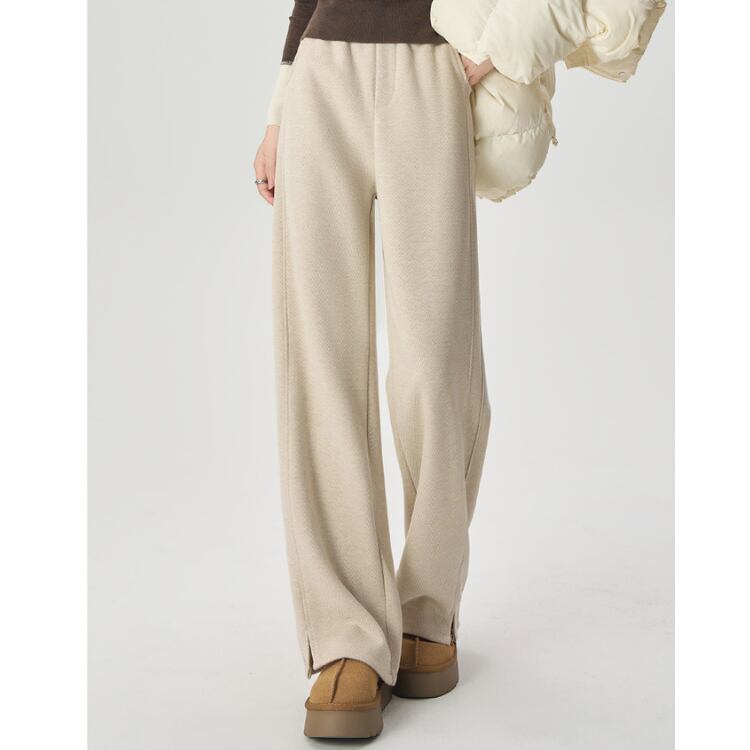 ゆったりとしたシルエットで、脚のラインを美しく見せるストレートパンツ。柔らかな肌触りの素材で履き心地も快適。裾のスリットがさりげなく抜け感をプラスし、トレンド感のある1本です。普段使いからお出かけまで幅広く活躍するアイテム。